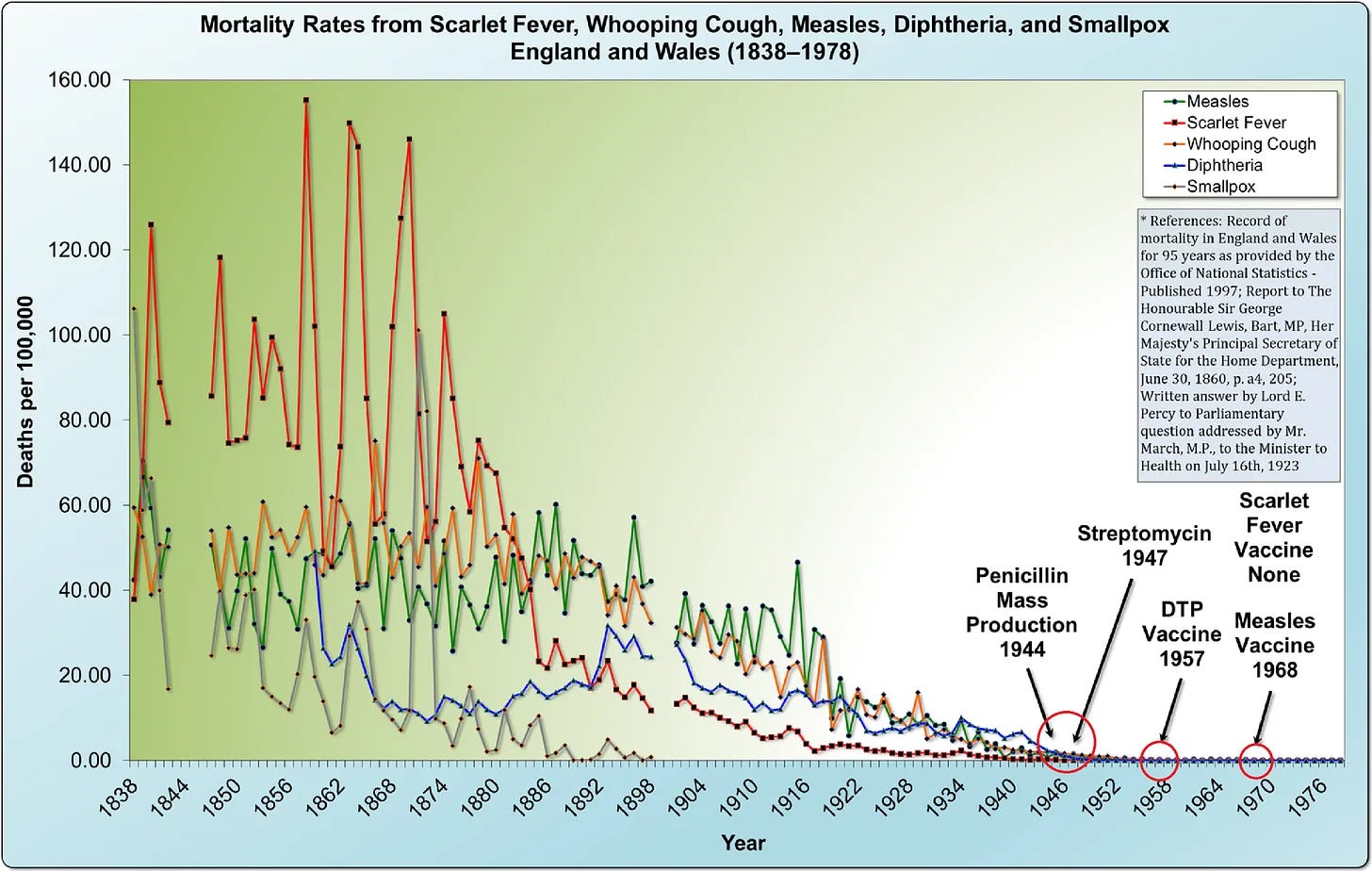 Οστρακιά, τύφος, φυματίωση, διφθερίτιδα: Όλες ακολούθησαν την ίδια απότομη πτωτική πορεία στη θνησιμότητα ξεκινώντας από τα τέλη του 1800 ή τις αρχές του 1900, με τα εμβόλια ή τα αντιβιοτικά να φτάνουν μόνο αφού είχε ήδη αρθεί ο σοβαρότερος αριθμός θανάτων.