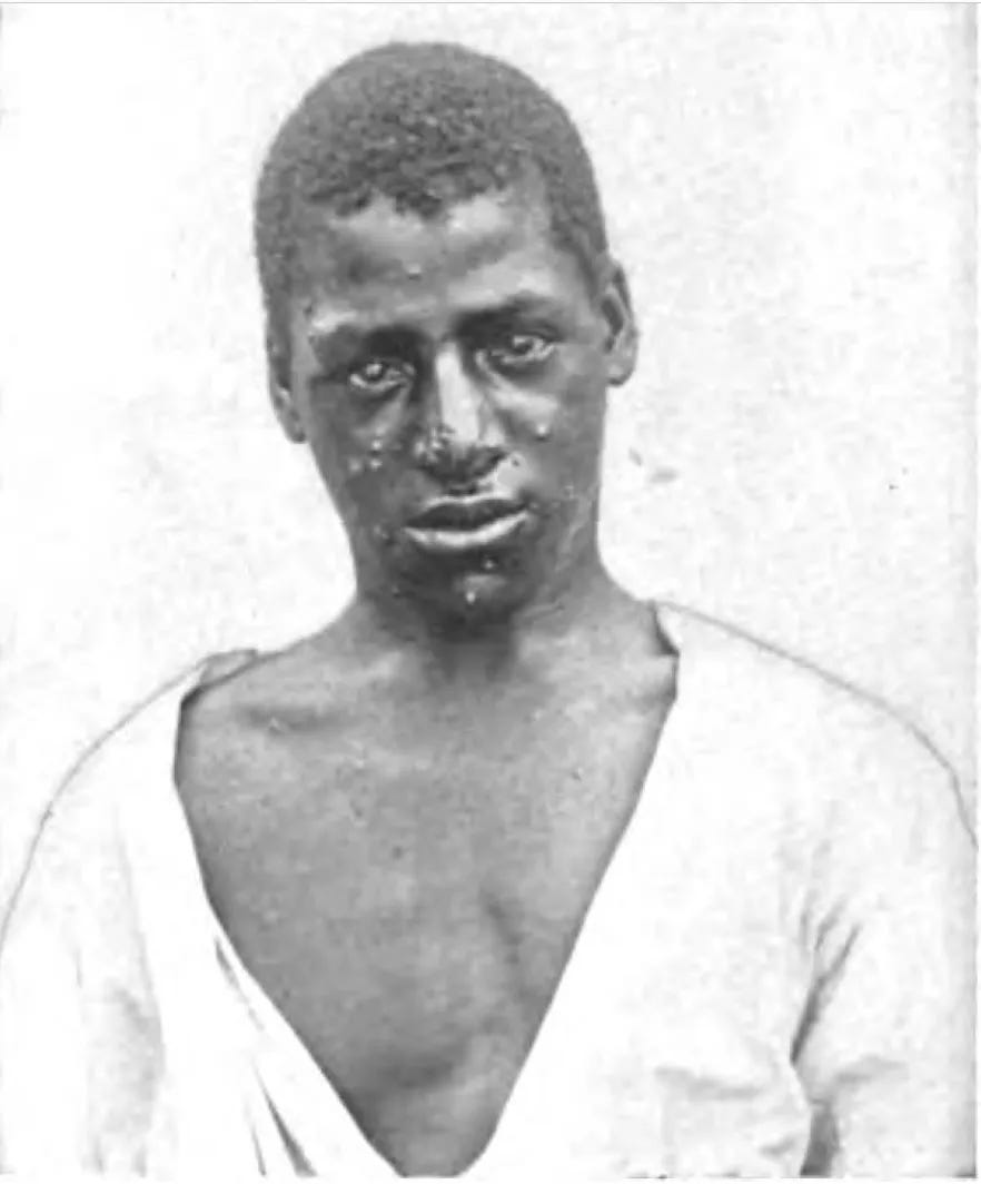 “Κατά τη διάρκεια του 1896, ένας πολύ ήπιος τύπος ευλογιάς άρχισε να επικρατεί στο Νότο και αργότερα εξαπλώθηκε σταδιακά σε όλη τη χώρα. Η θνησιμότητα ήταν πολύ χαμηλή και [η ευλογιά] συνήθως αρχικά συγχέονταν με την ανεμοβλογιά “. [20]
